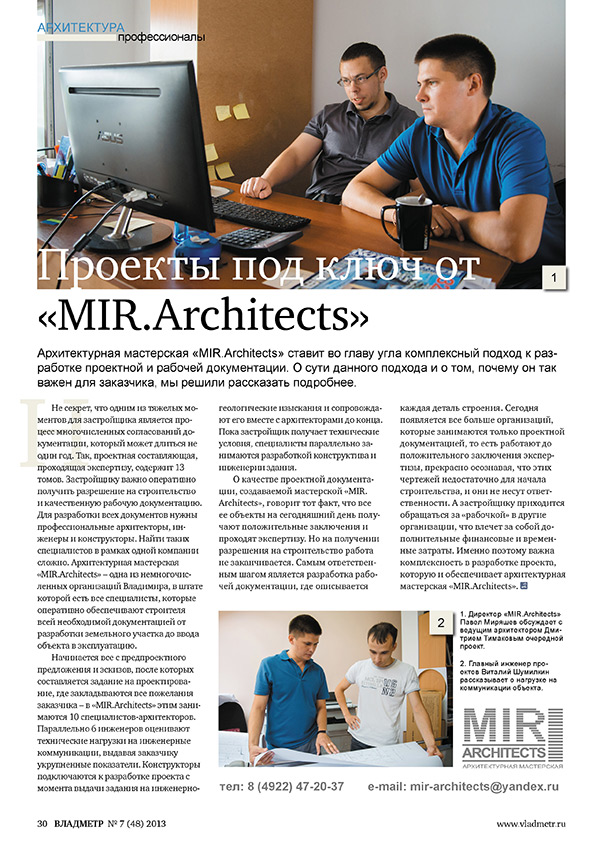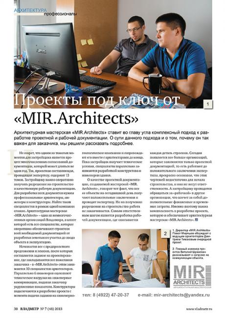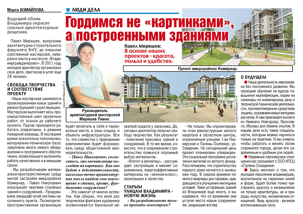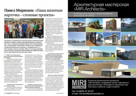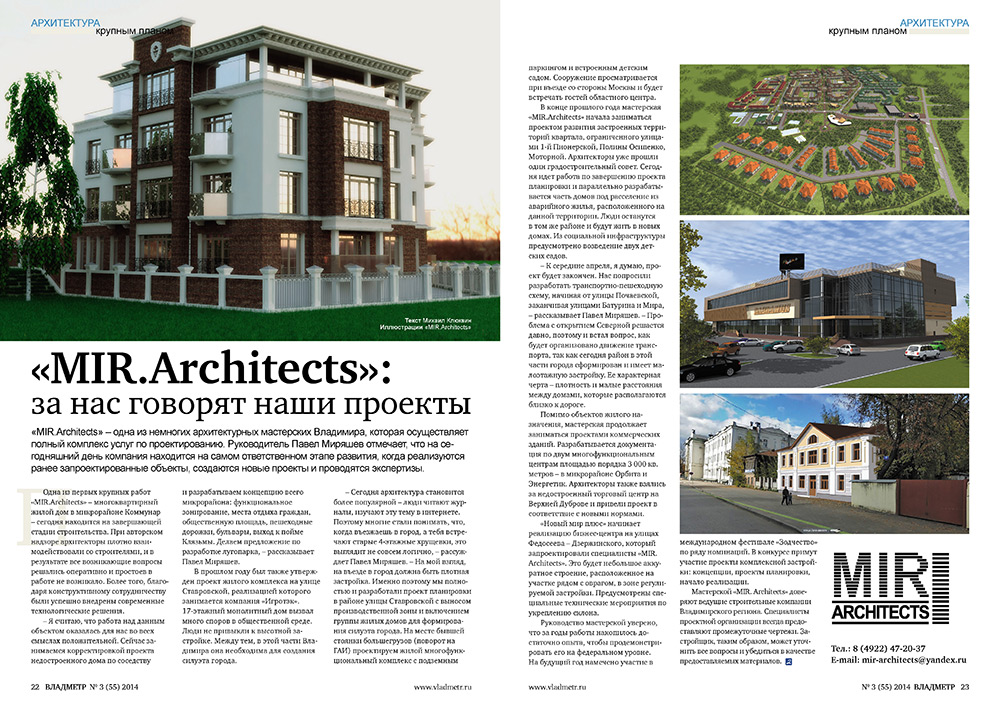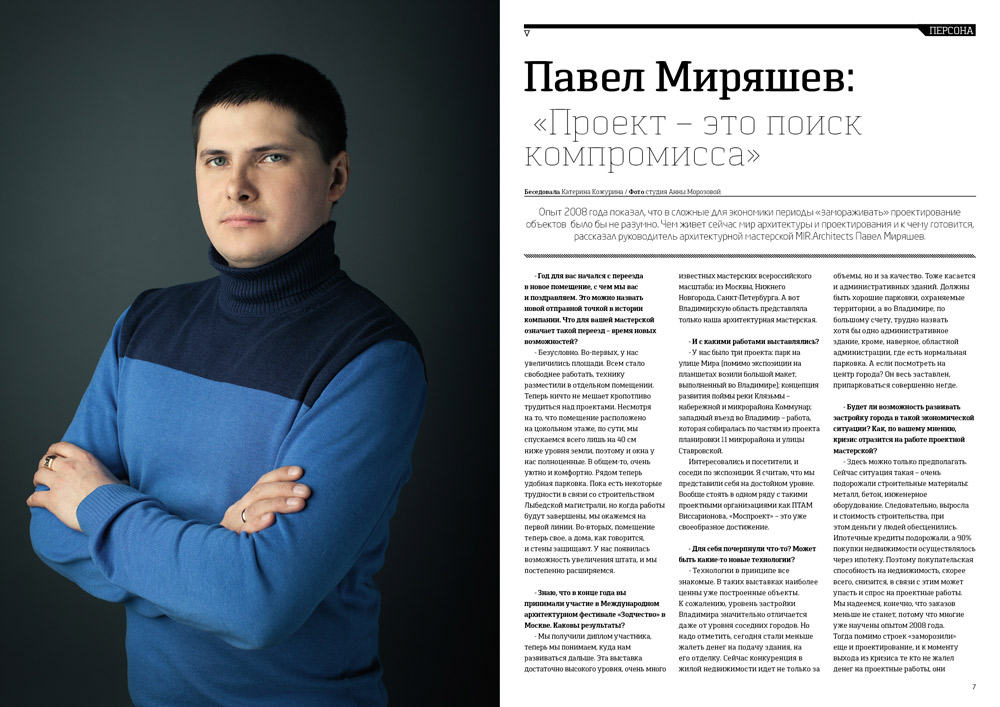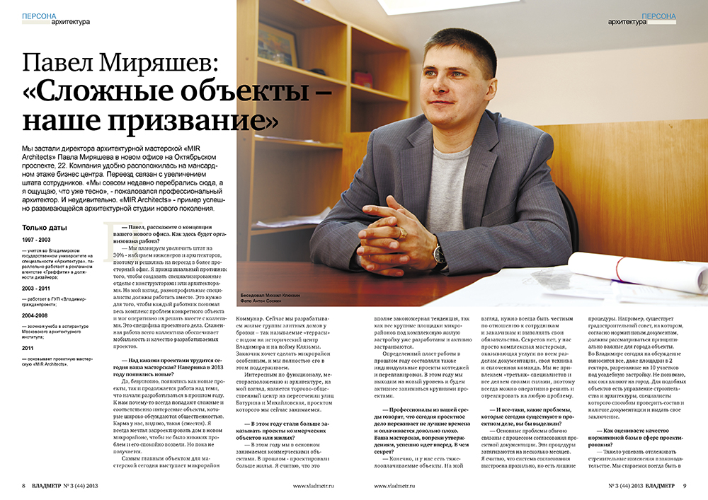 Интервью директора архитектурной мастерской «MIR Architects» Павла Миряшева журналу «Владмерт»
