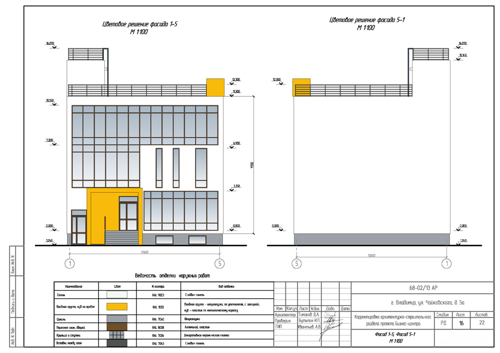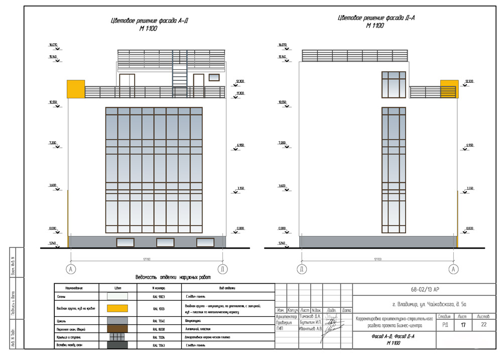 Архитектурными акцентами являются - входная группа и декоративный куб на кровле. Большие площади остекления и применяемое стекло с высокой отражательной способностью позволяет еще лучше вписываться зданию в окружающую среду, здание целостное и традиционное в градостроительном смысле.