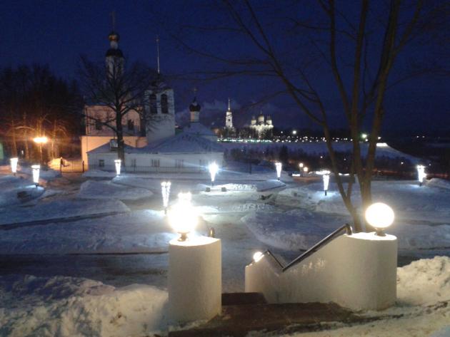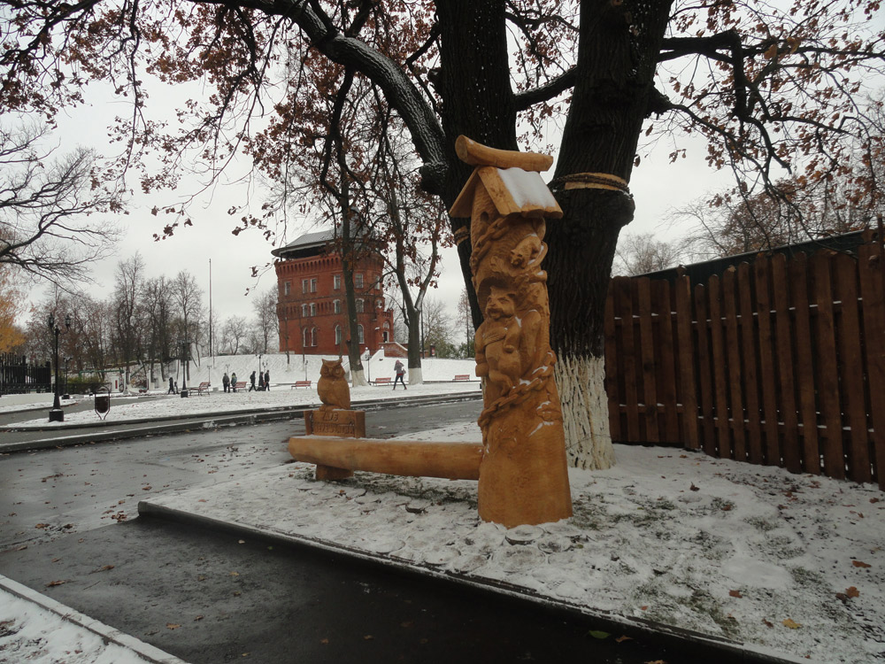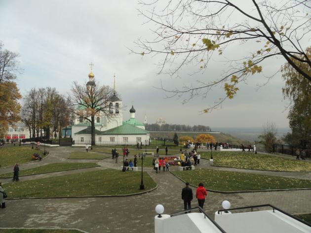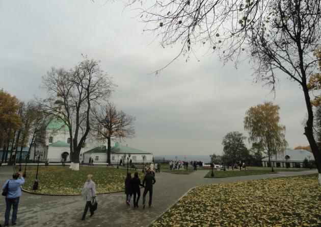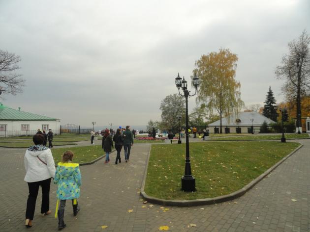 Завершает благоустройство Спасского холма - смотровая площадка с видом на Успенский собор и склон Патриарших садов.