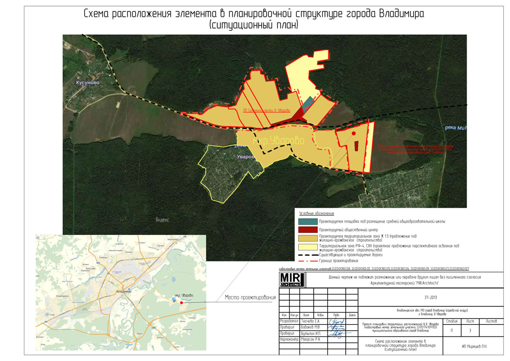 рассматривается как часть проекта планировки северной части деревни Уварово муниципального образования город Владимир 37-2013 ссылается на данный проект при этом проект планировки северной части деревни Уварово включает в себя расчеты так же и на проект планировки территории в д. Уварово(кадастровый номер земельного участка 33:05:174109:103) и существующую застройку д. Уварово и д. Кусуново.