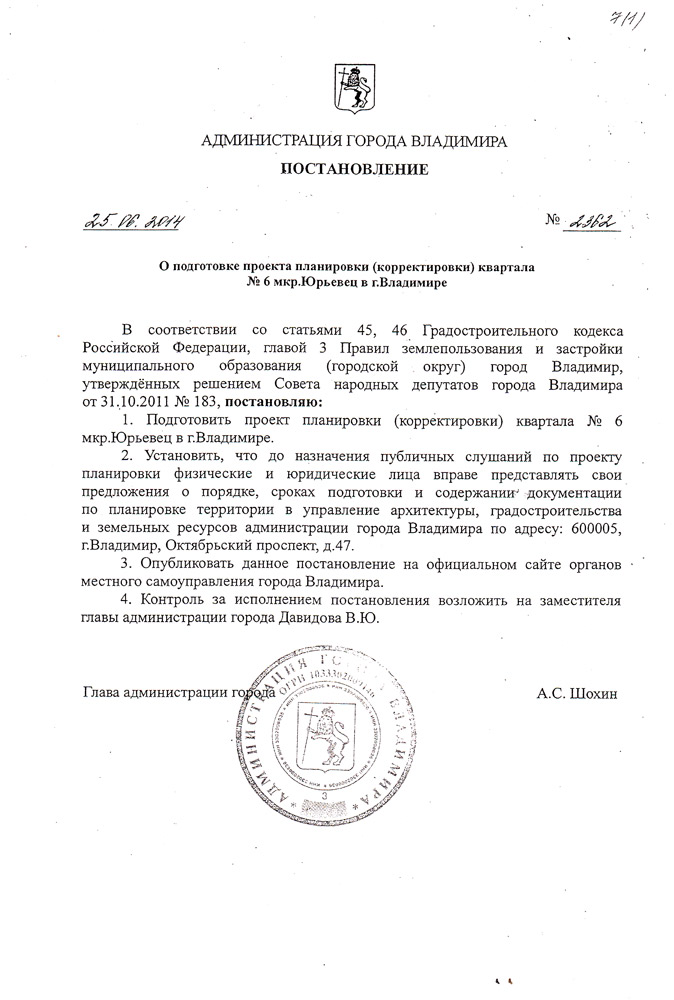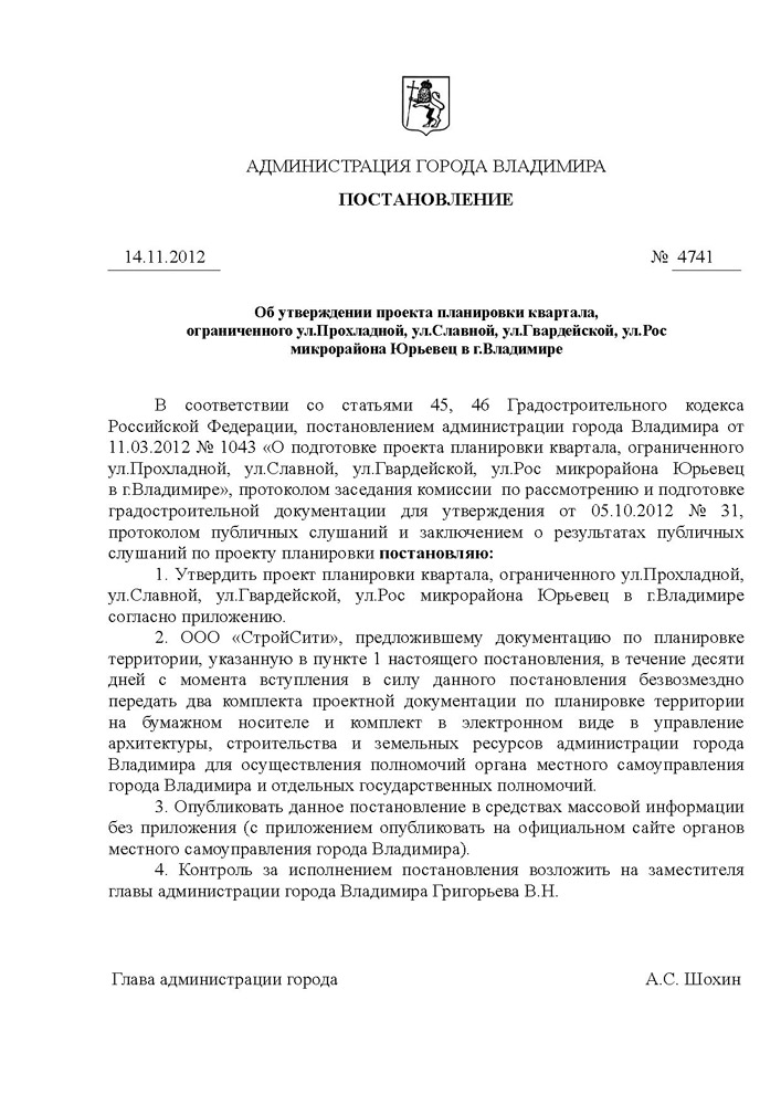 Проект планировки квартала, ограниченного ул. Прохладной, ул. Славной, ул. Гвардейской, ул. Рос, микрорайона Юрьевец, города Владимира.